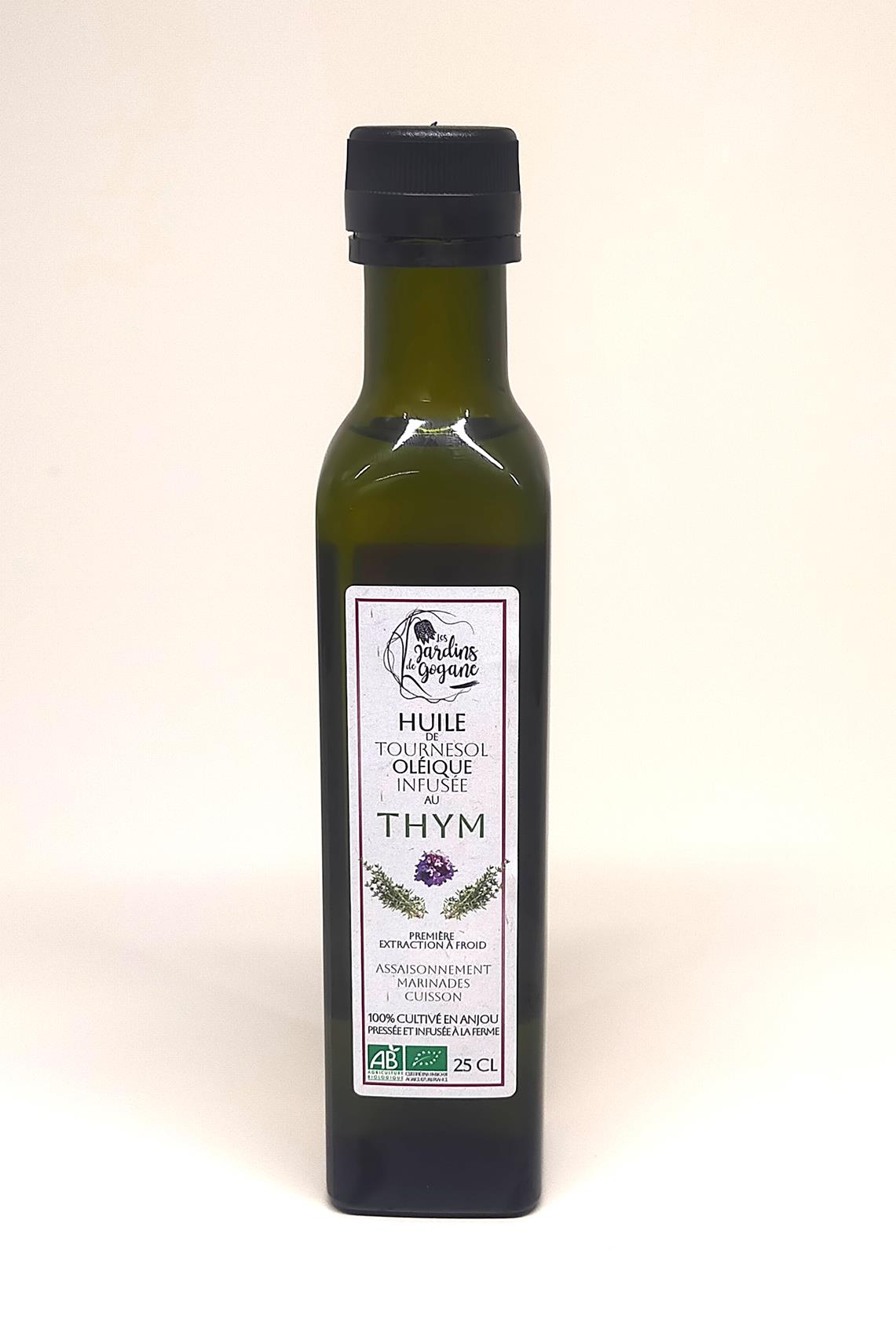 Commandes / Les jardins de Gogane / Huile infusée au Thym – 25 cl Huile infusée au Thym – 25 cl7,00 € la bouteille Huile de tournesol oléique infusée au Thym. Diététique et convient à la cuisson ! Rupture de stock